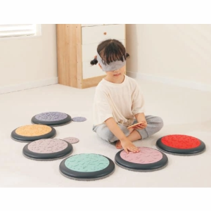 Children identify each textured piece by touch and match it to thecorrect spot on the corresponding plate. This activity encourages tactilerecognition, enhances problem-solving skills, and strengthens hand-eyecoordination. When their eyes are covered, children rely solely on touch,helping them better understand shapes and surfaces. This training greatlyimproves tactile sensitivity and recognition abilities.